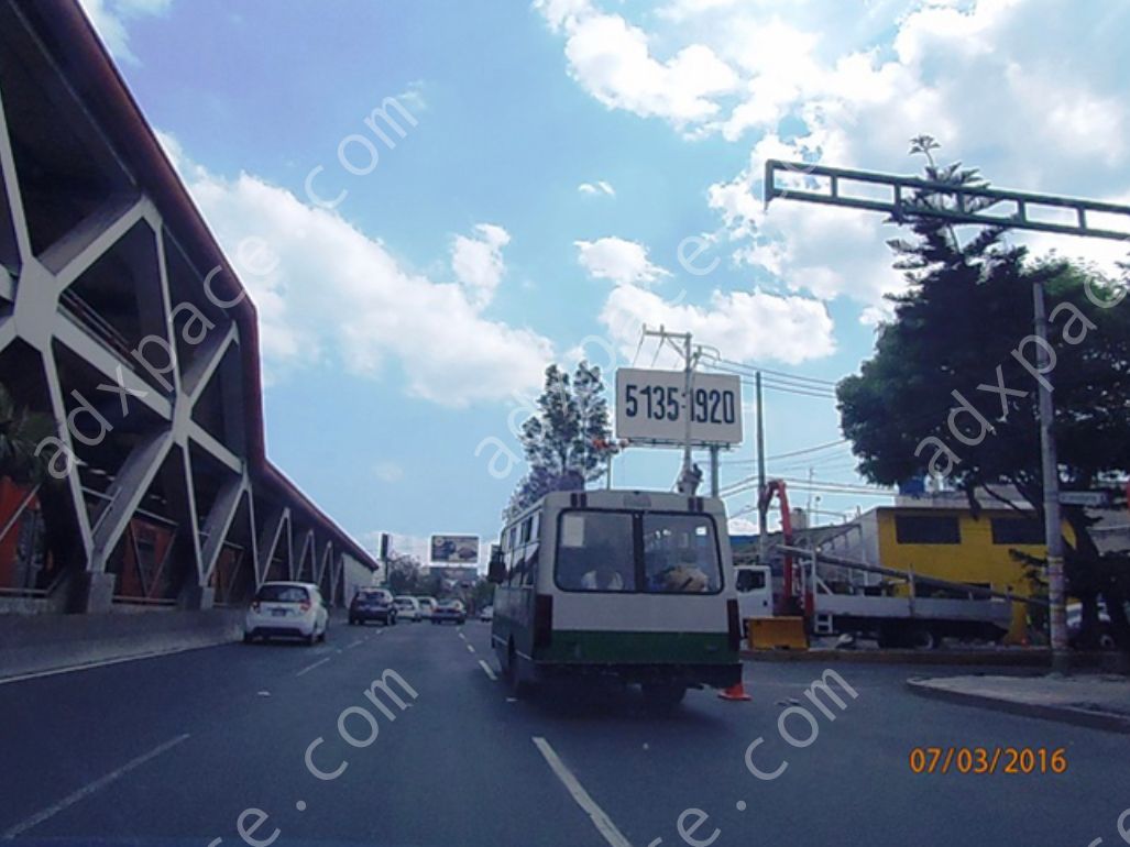 Eje 6 Sur, Trabajadoras Sociales, esq. México 56 S/N Verified Dimensiones Base(m) 12.9 Altura(m) 7.2 CaracterÃÂsticas Estructura Unipolar Espectaculares